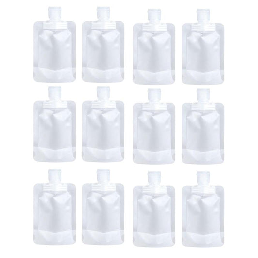 12 Counts Reusable Plastic Pouches, Squeeze Bulk Pouches, Clear Juice Drink Bags for Adults Travel Beverage