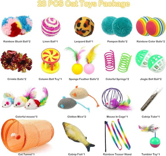 27-Piece Cat Toy Set – Interactive Kitten Toys with Tunnel, Catnip Fish, Feather Wand, Fluffy Mice, Jingle Balls & More – Ultimate Play Pack for Cats & Kittens
