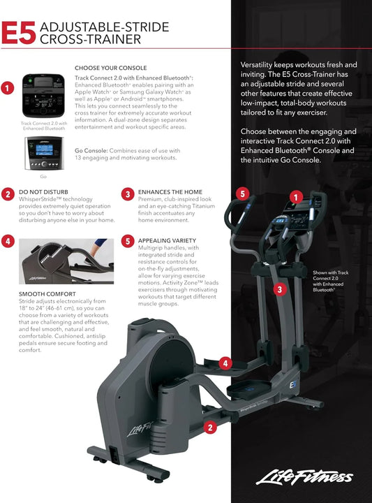 E5 Cross Trainer Elliptical Exercise Machine with Go Console, Titanium